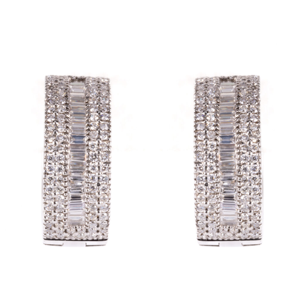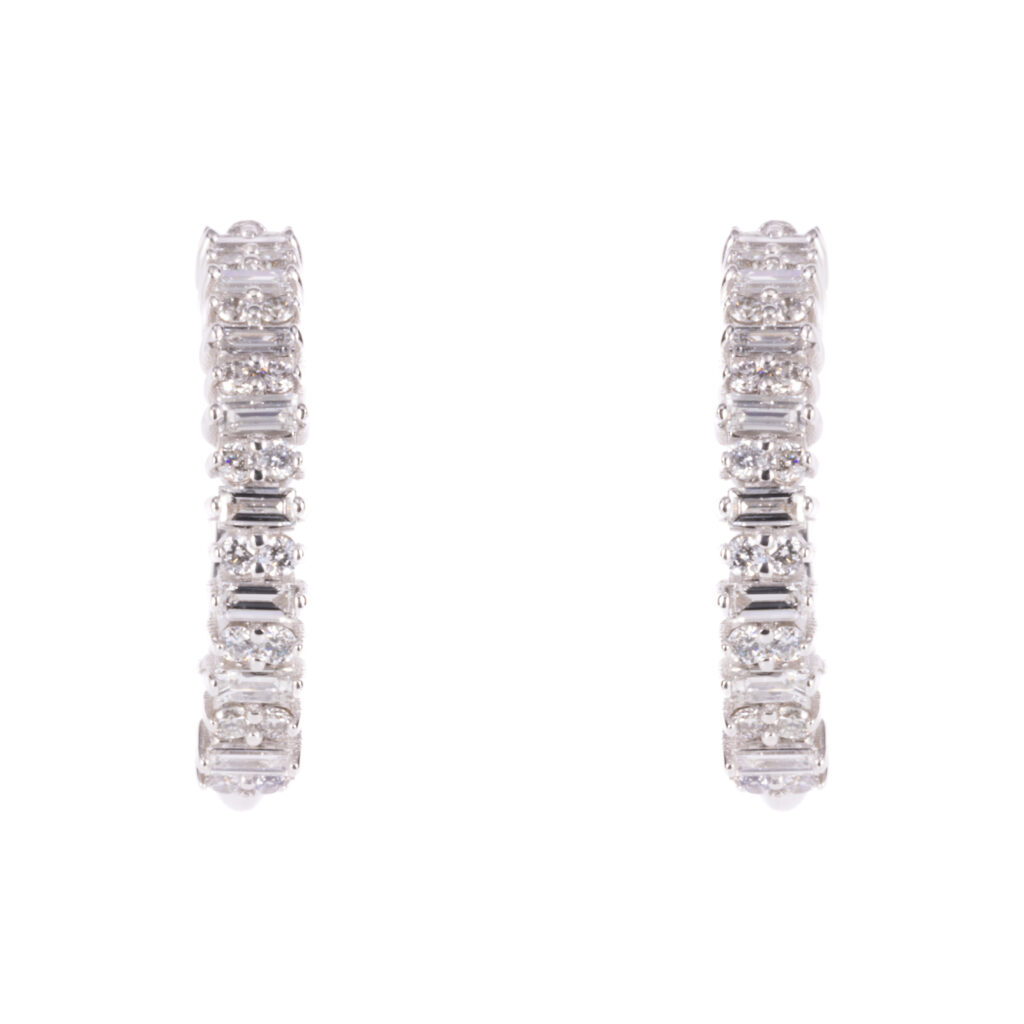 Whie Gold Baguette Diamond Hoop Studs