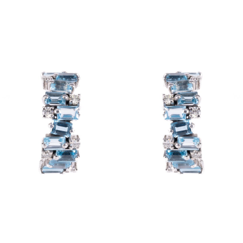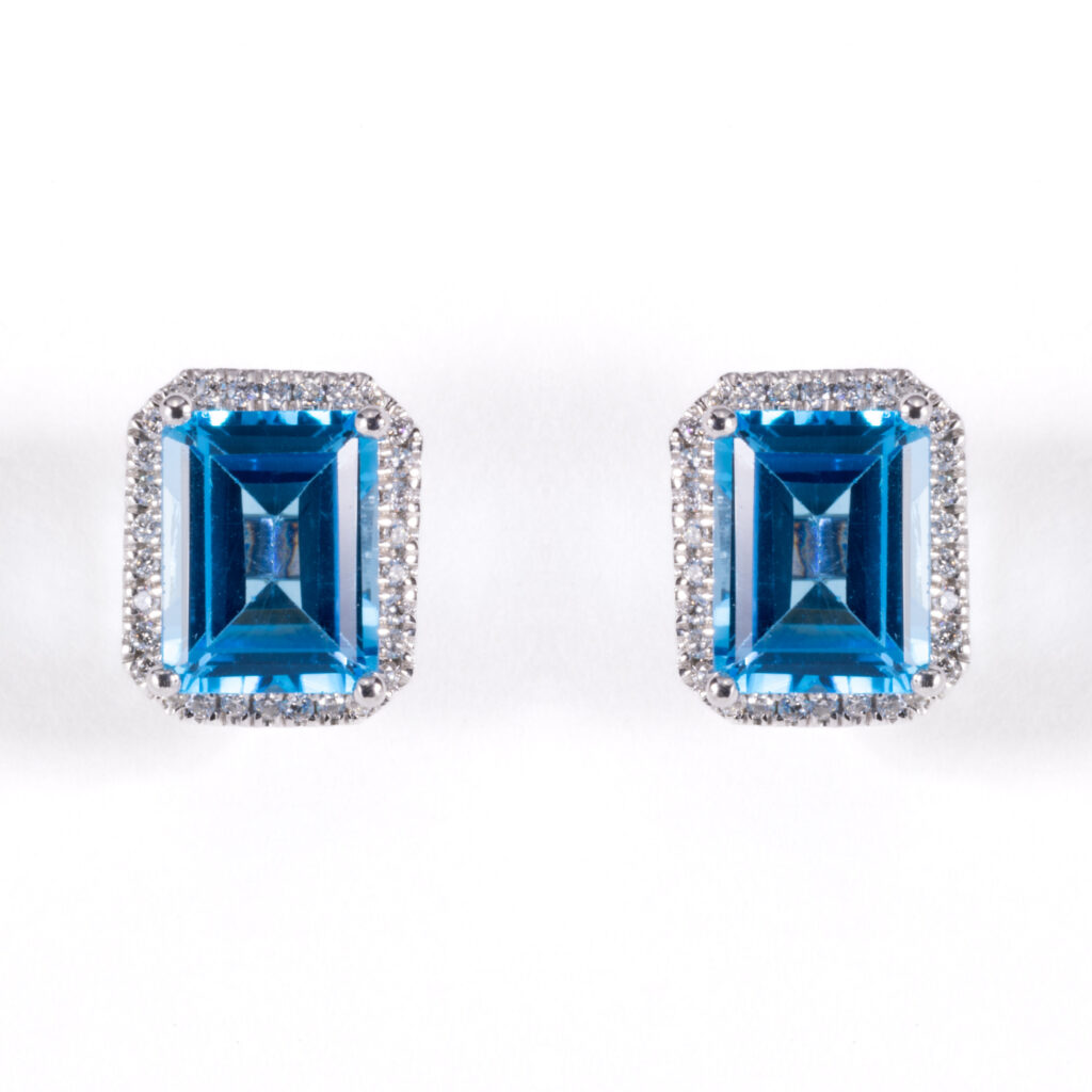 White Gold Blue Topaz & Diamonds Stud Earrings