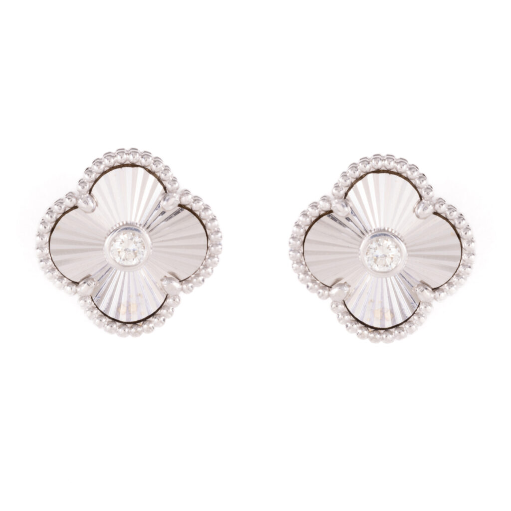 White Gold Clover Diamond Studs