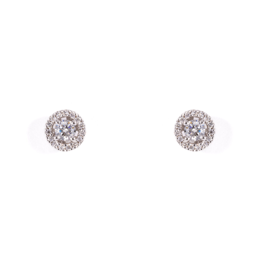 White Gold Diamond Halo Stud Earrings