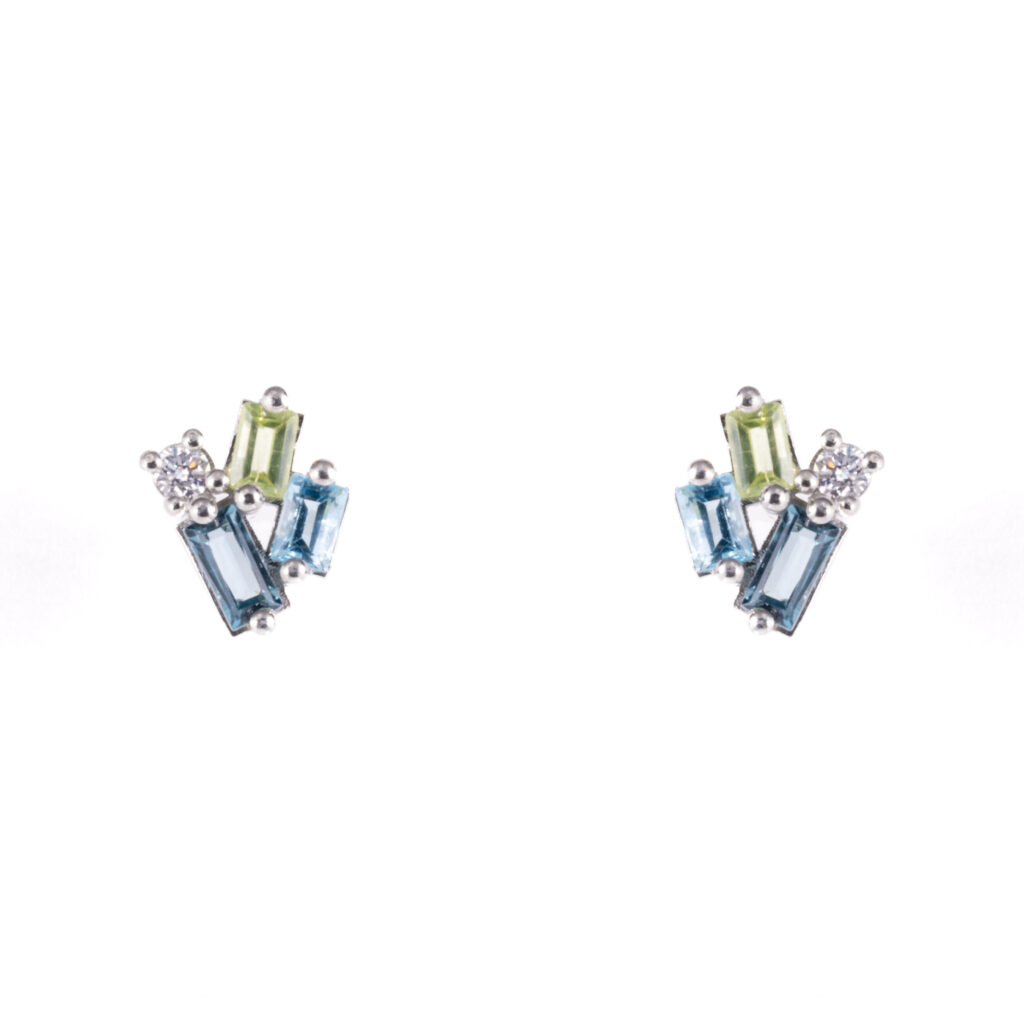 Baguette Blue And Green Sapphires & Diamond Earrings