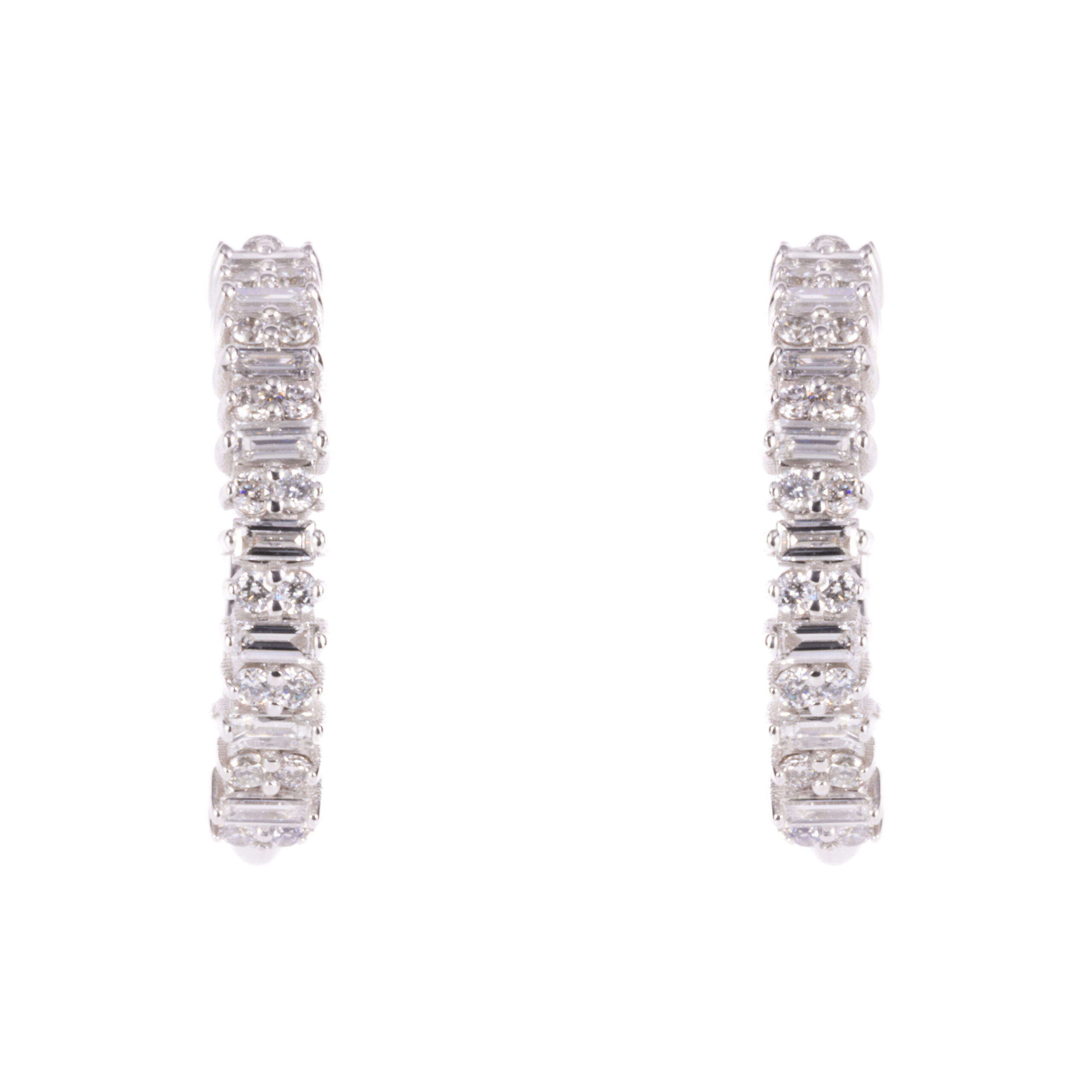 Whie Gold Baguette Diamond Hoop Studs Whie Gold Baguette Diamond Hoop Studs