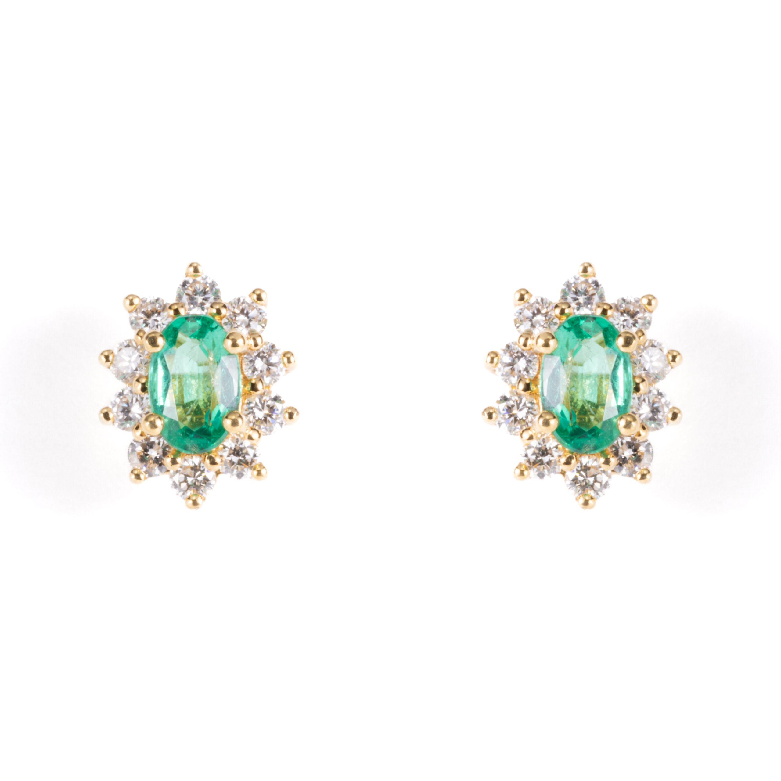 Yellow Gold Emerald And Diamond Cluster Stud Earrings